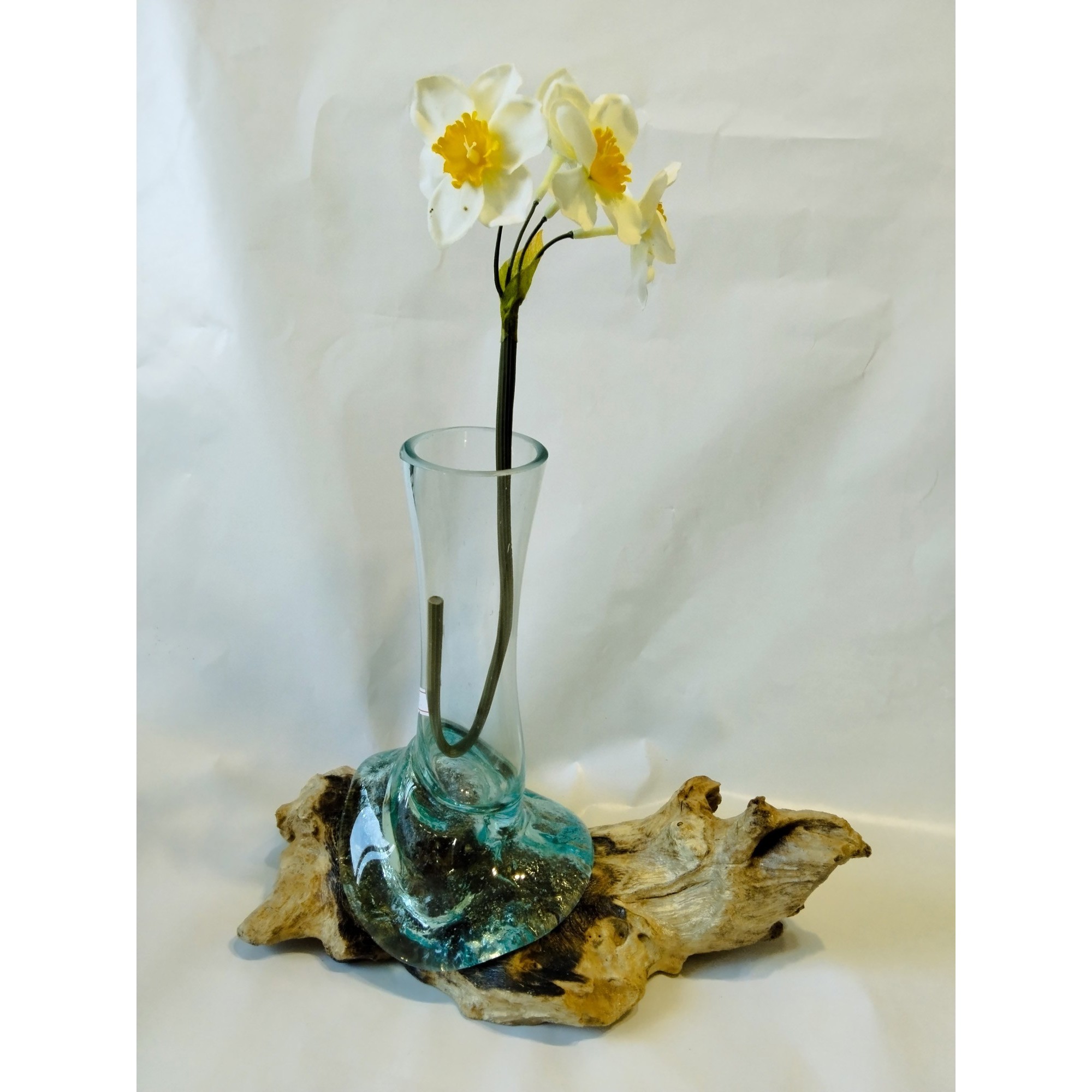 Ένα υπέροχο βάζο από κομμάτι ρίζας με φυσητό γυαλί