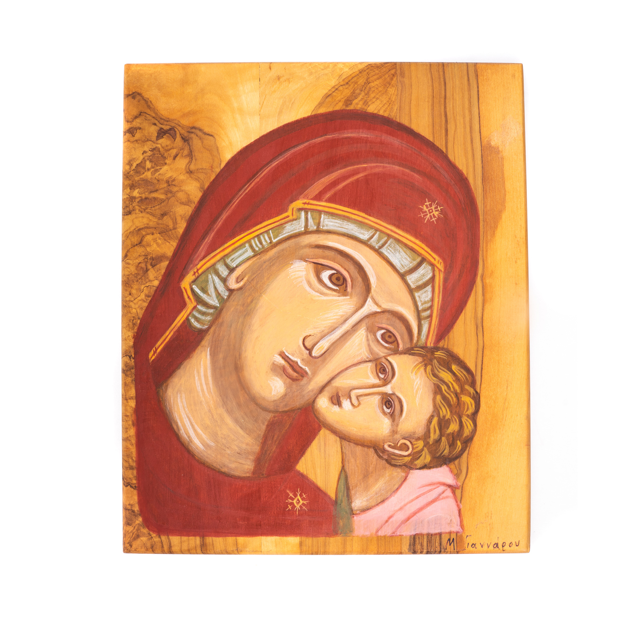 Παναγία Με Βρέφος Ζωγραφιστή Σε Ξύλο Ελιάς