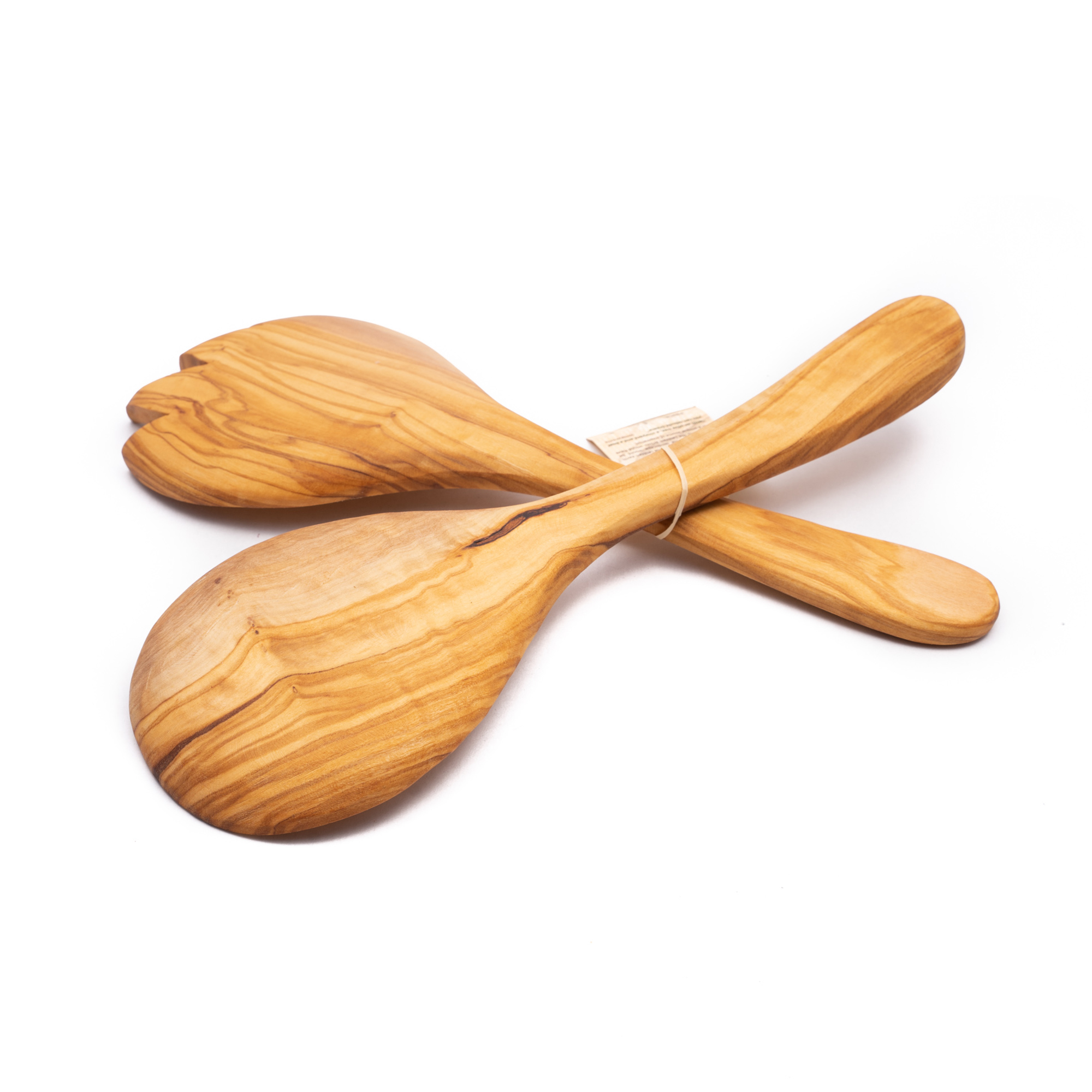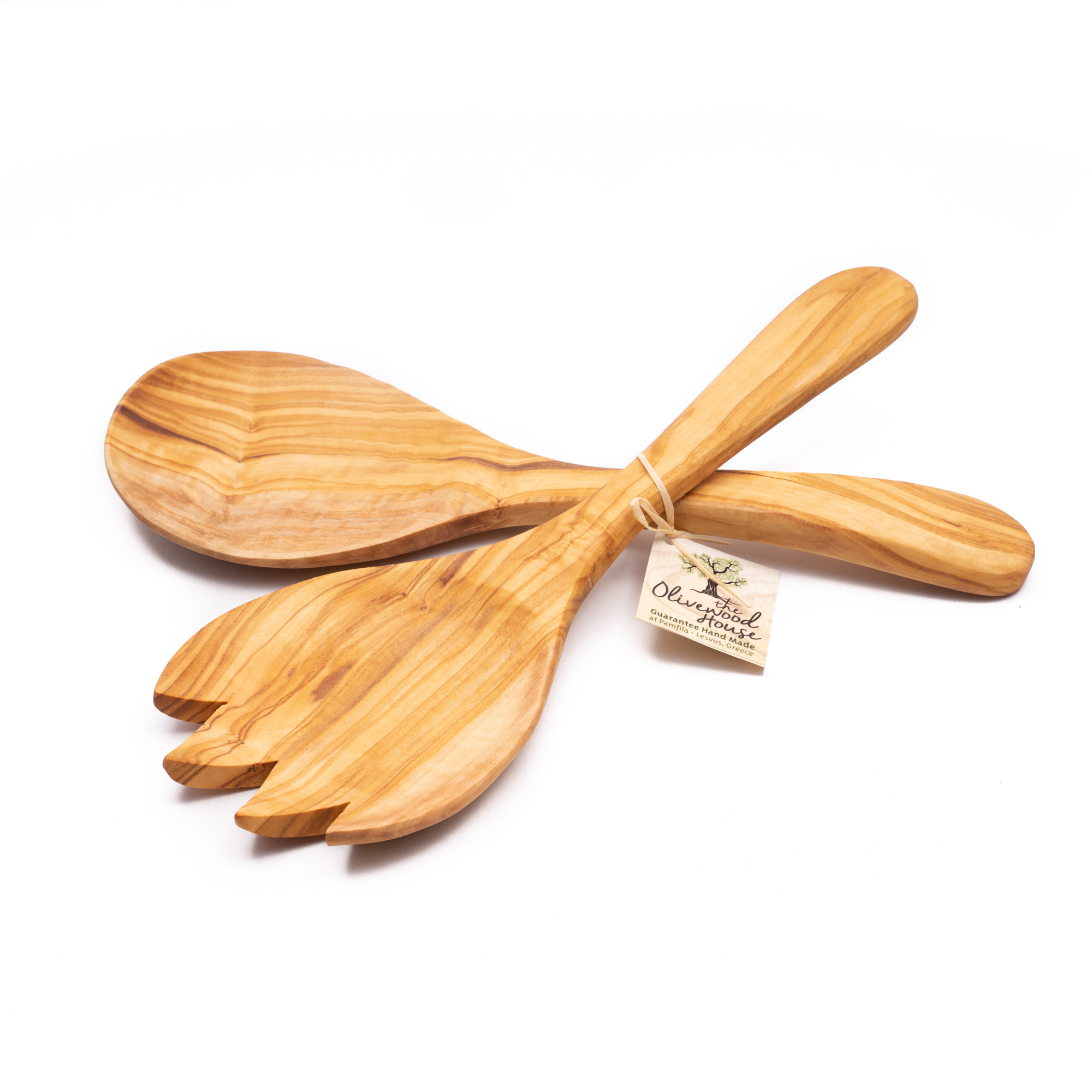 Σετ Ξύλινα Κουτάλια Σαλάτας Μεγάλα Στρογγυλά, Κοντά, Φαρδιά