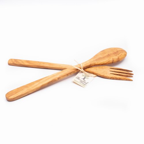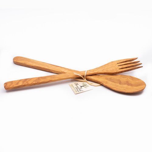 Σετ Ξύλινο Κουτάλι-Πιρούνι Φαγητού Απλό Μεγάλο