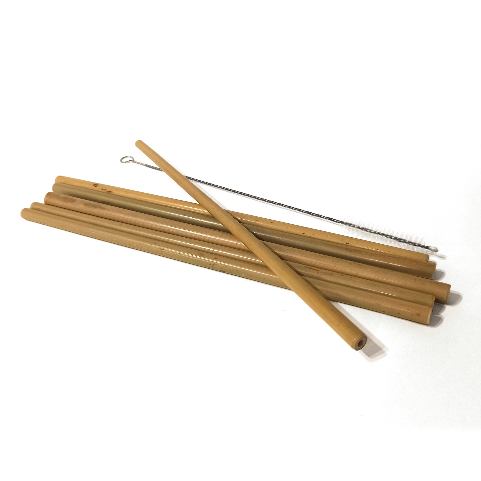 Wooden Straws Big - 6 Pieces With Cleaning Brush